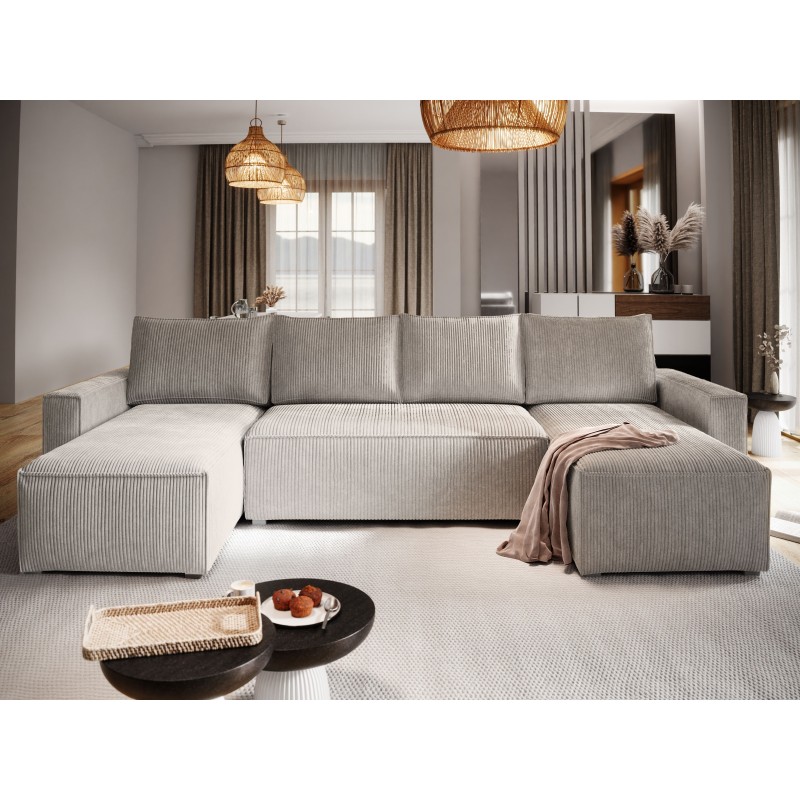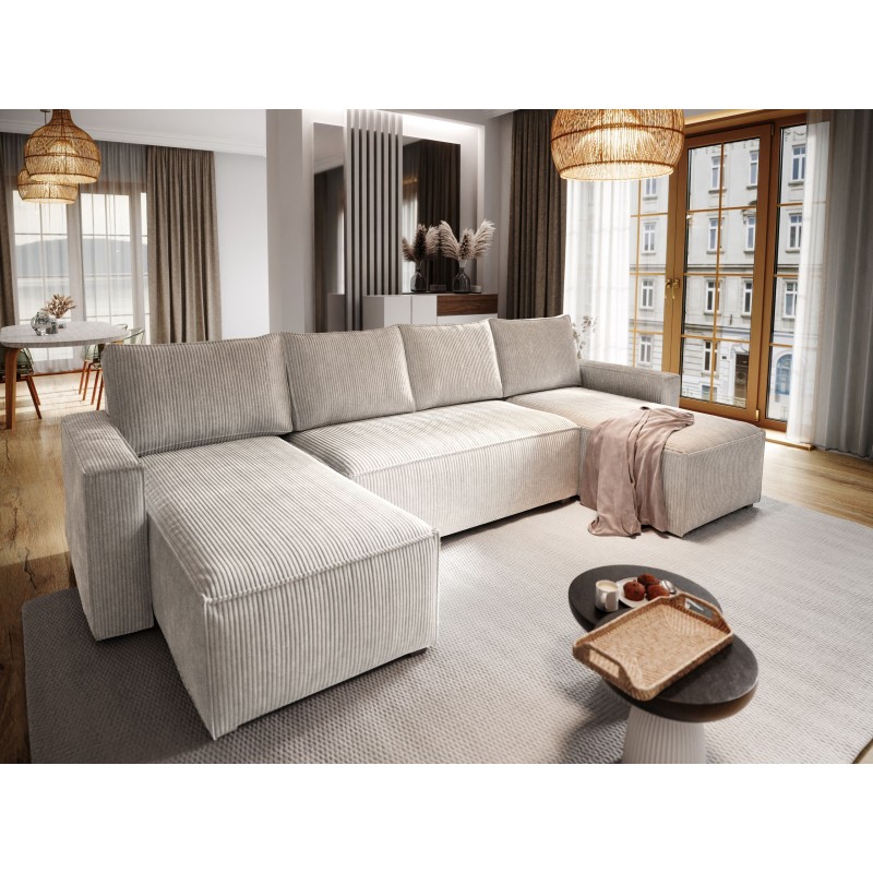 Masseno Ecksofa ASPRA mit Schlaffunktion und Bettkasten, Ausziehbares Bettsofa - Creme, POSO 100