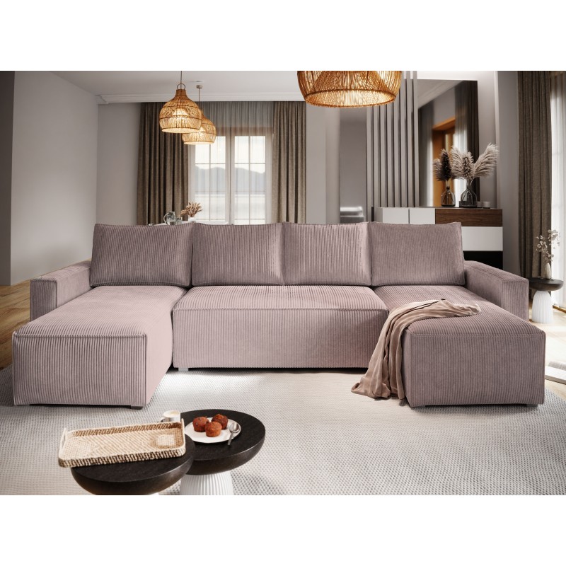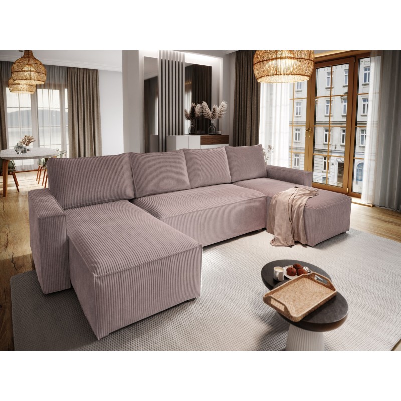 Masseno Ecksofa ASPRA mit Schlaffunktion und Bettkasten, Ausziehbares Bettsofa - Lila, POSO 130