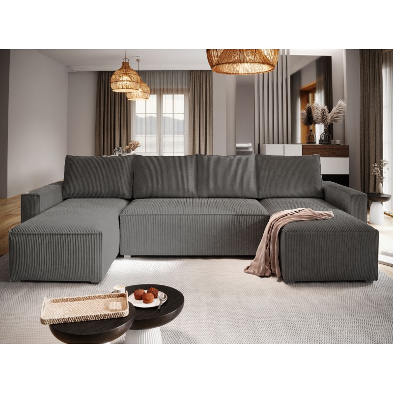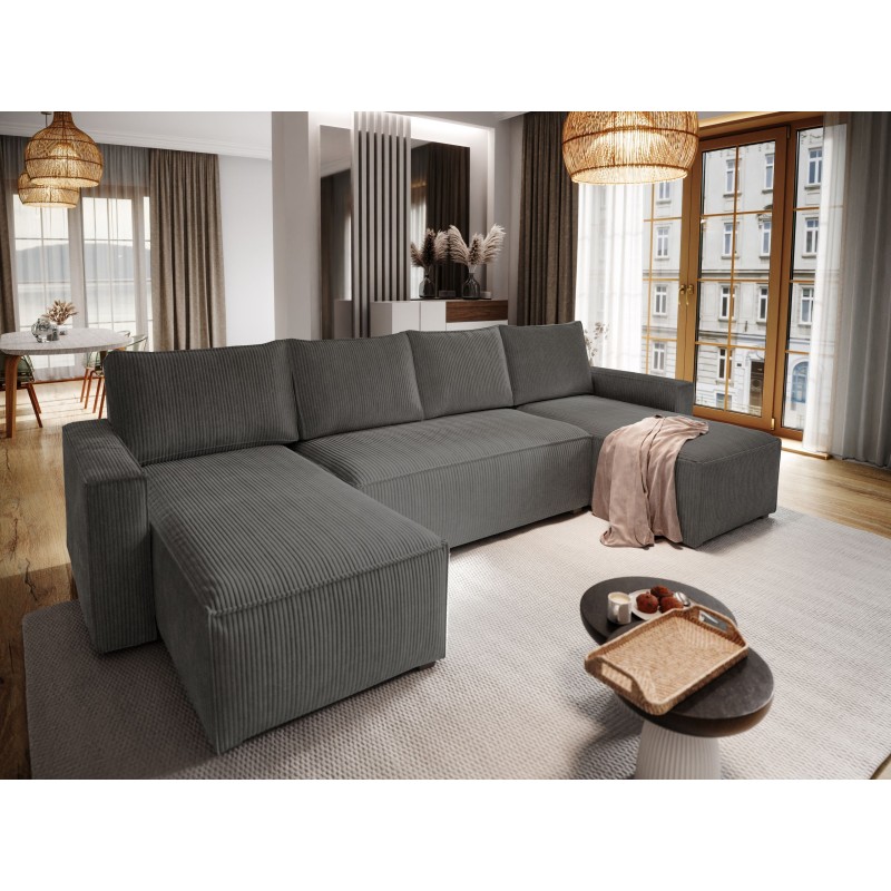Masseno Ecksofa ASPRA mit Schlaffunktion und Bettkasten, Ausziehbares Bettsofa - Graphitfarben, POSO 34