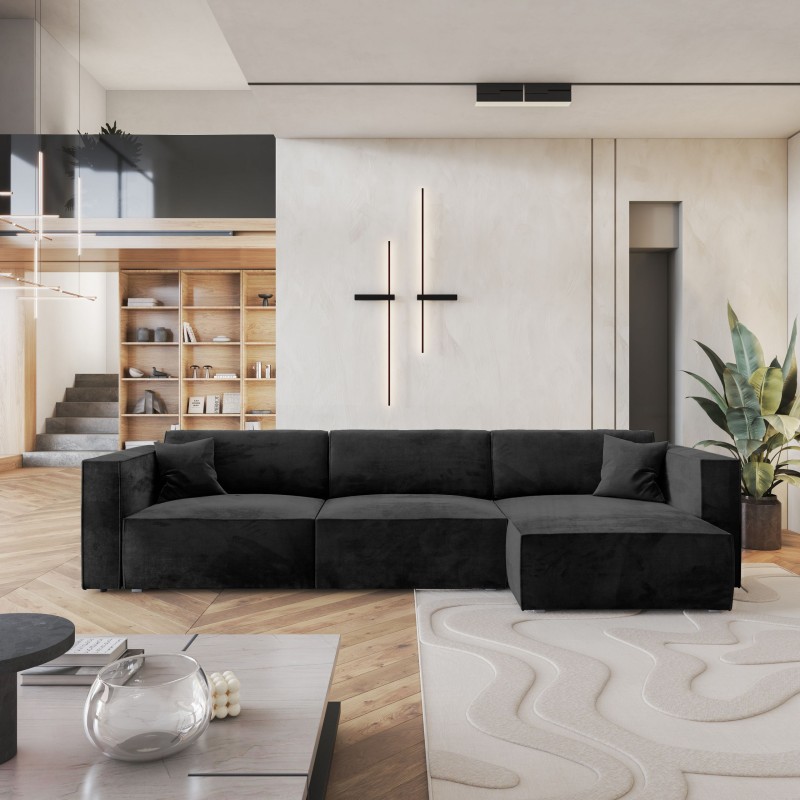 Masseno Ecksofa TOLMO mit Schlaffunktion und Bettkasten, Ausziehbares Bettsofa - Schwarz, MONOLITH 95
