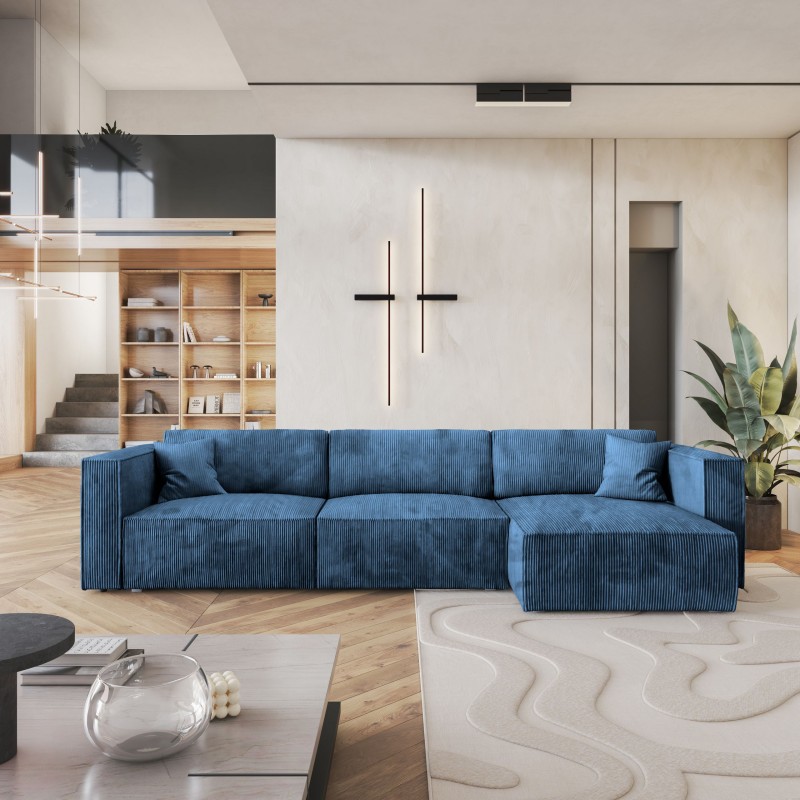 Masseno Ecksofa TOLMO mit Schlaffunktion und Bettkasten, Ausziehbares Bettsofa - Blau, POSO 05