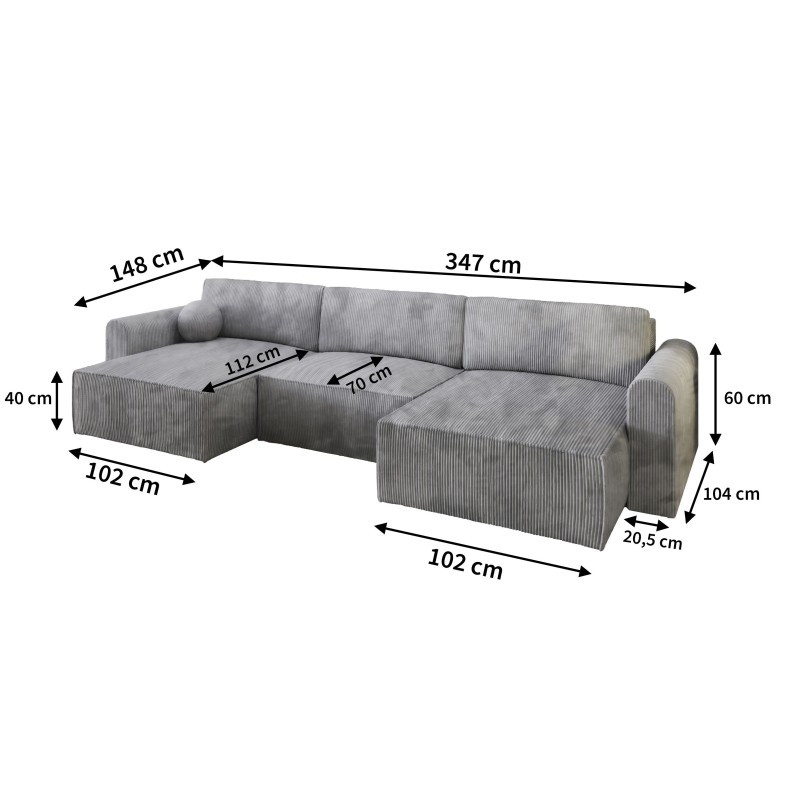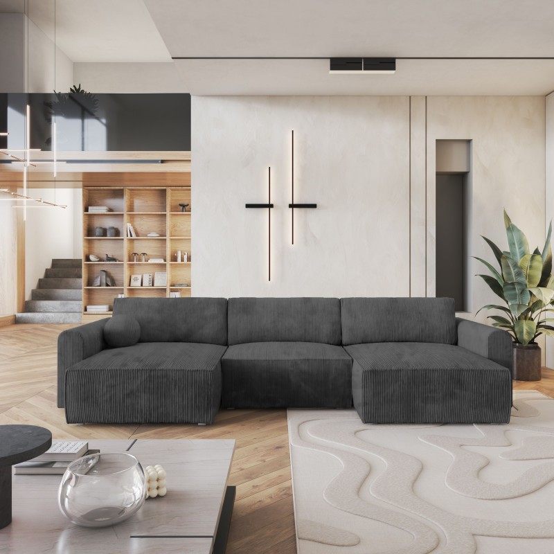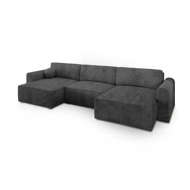 Masseno Ecksofa FENTO mit Schlaffunktion und Bettkasten, Ausziehbares Bettsofa - Graphitfarben, POSO 34