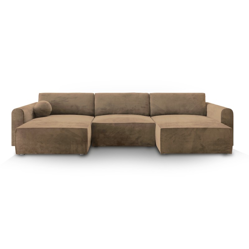 Masseno Ecksofa FENTO mit Schlaffunktion und Bettkasten, Ausziehbares Bettsofa - Beige, MONOLITH 09