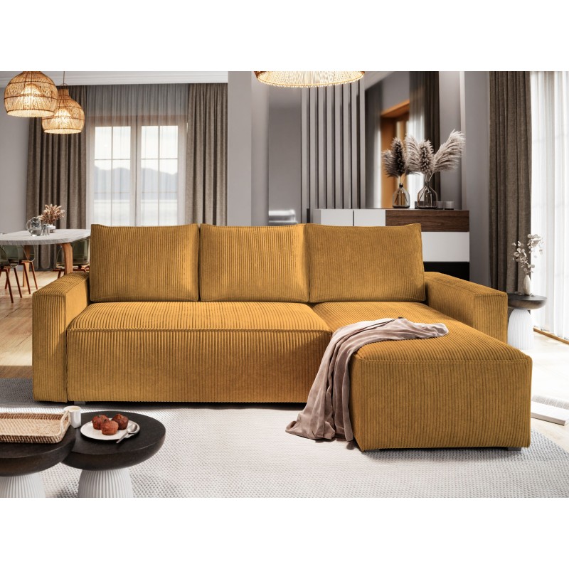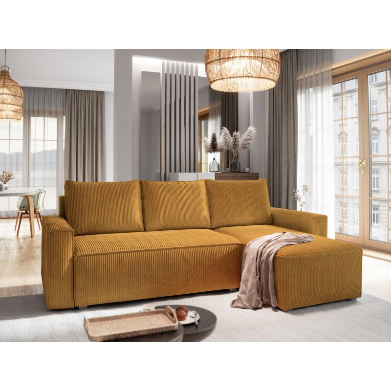 Masseno Ecksofa POTARO mit Schlaffunktion und Bettkasten, Ausziehbares Bettsofa - Gelb, POSO 01