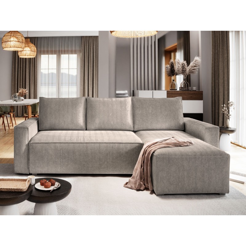 Masseno Ecksofa POTARO mit Schlaffunktion und Bettkasten, Ausziehbares Bettsofa - Beige, POSO 02