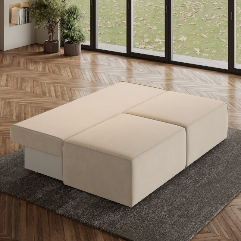 Das modulare Ecksofa VARNA ist die ideale Lösung für alle, die Funktionalität und Flexibilität bei der Raumgestaltung schätzen. Dank des mitgelieferten Hockers können Sie die Anordnung des Möbelstücks ganz nach Ihren Bedürfnissen anpassen – stellen Sie ihn auf die linke oder rechte Seite, entsteht eine komfortable Eckgarnitur. Wenn Sie ihn separat platzieren, erhalten Sie ein stilvolles Set aus Sofa und Hocker. Diese Vielseitigkeit ermöglicht es, den Raum sowohl für den täglichen Komfort als auch für das Empfangen von Gästen optimal zu gestalten. Wählen Sie ein Sofa, das Stil, Bequemlichkeit und Funktionalität vereint!