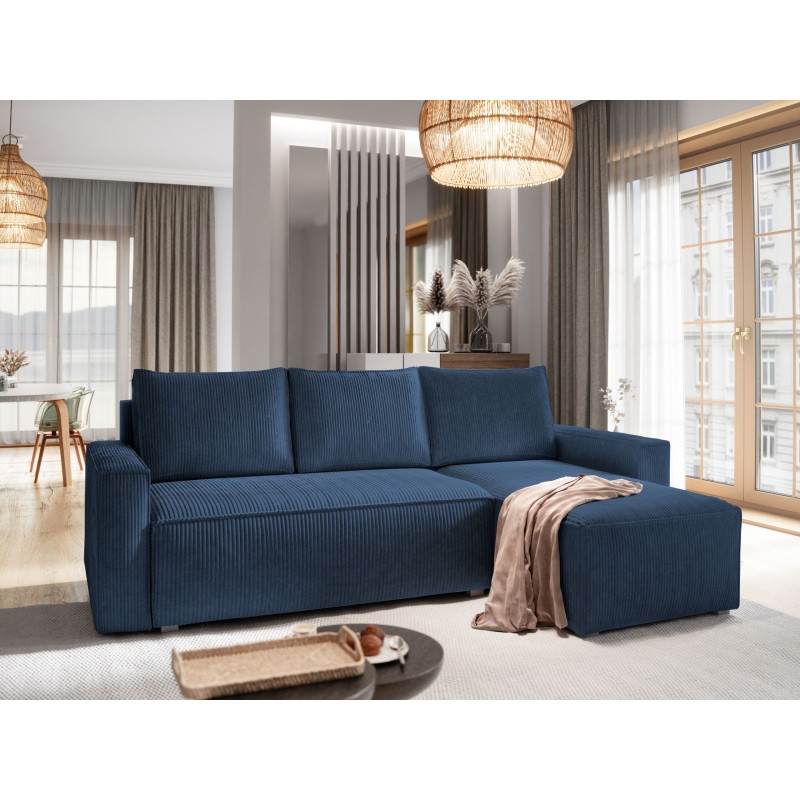 Masseno Ecksofa POTARO mit Schlaffunktion und Bettkasten, Ausziehbares Bettsofa - Blau, POSO 05