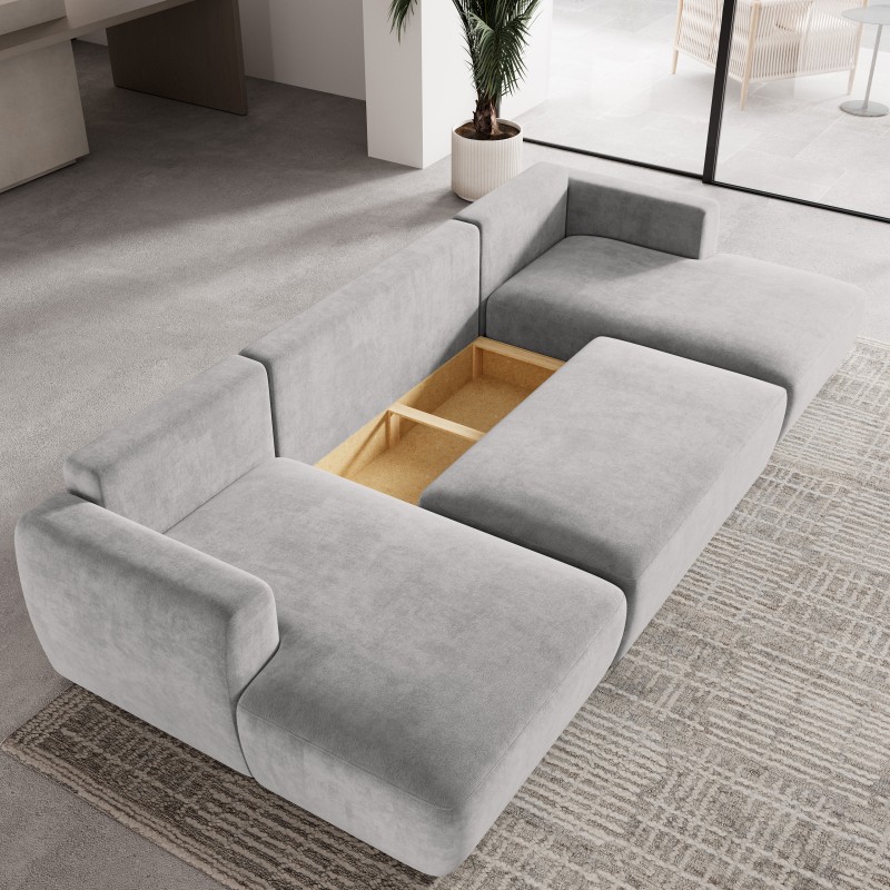 Masseno Ecksofa SENTUM mit Schlaffunktion und Bettkasten, Ausziehbares Bettsofa - Hellgrau, PAROS 05