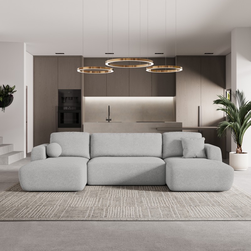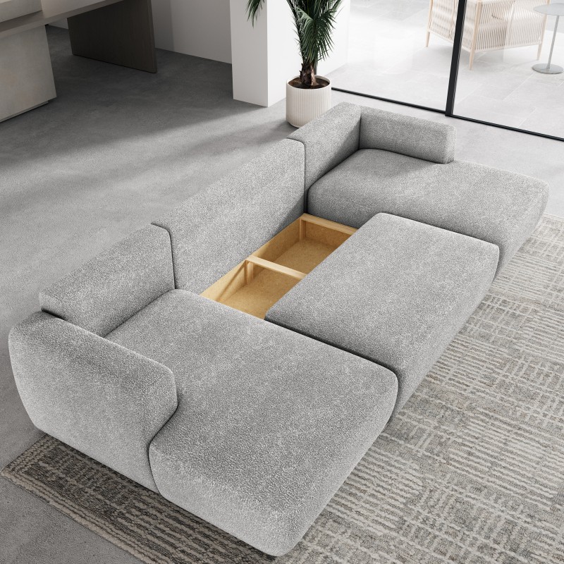 Masseno Ecksofa SENTUM mit Schlaffunktion und Bettkasten, Ausziehbares Bettsofa - Hellgrau, NOW OR NEVER 83
