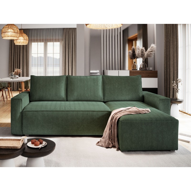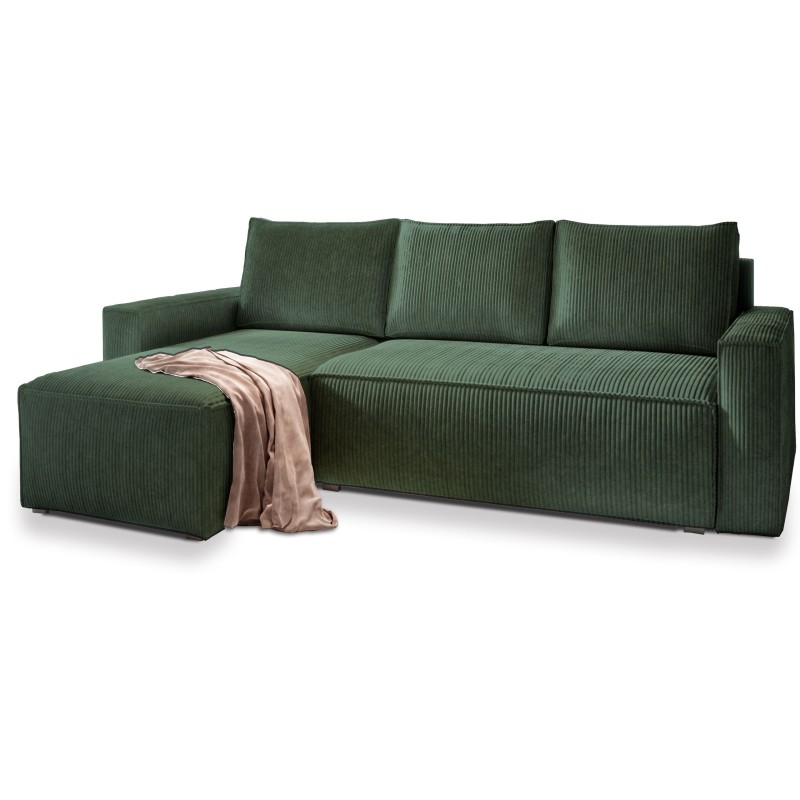 Masseno Ecksofa POTARO mit Schlaffunktion und Bettkasten, Ausziehbares Bettsofa - Grün, POSO 14