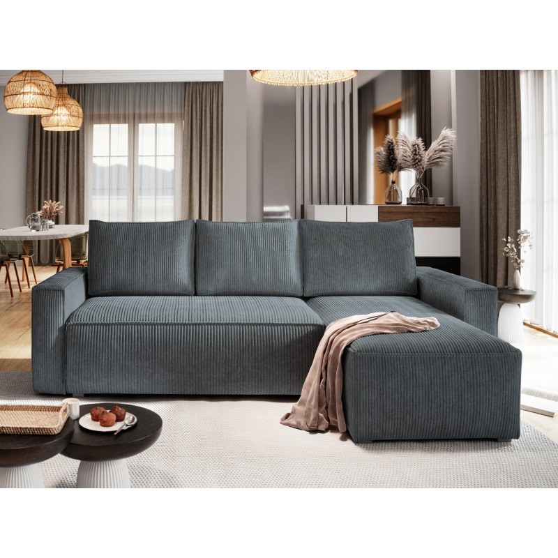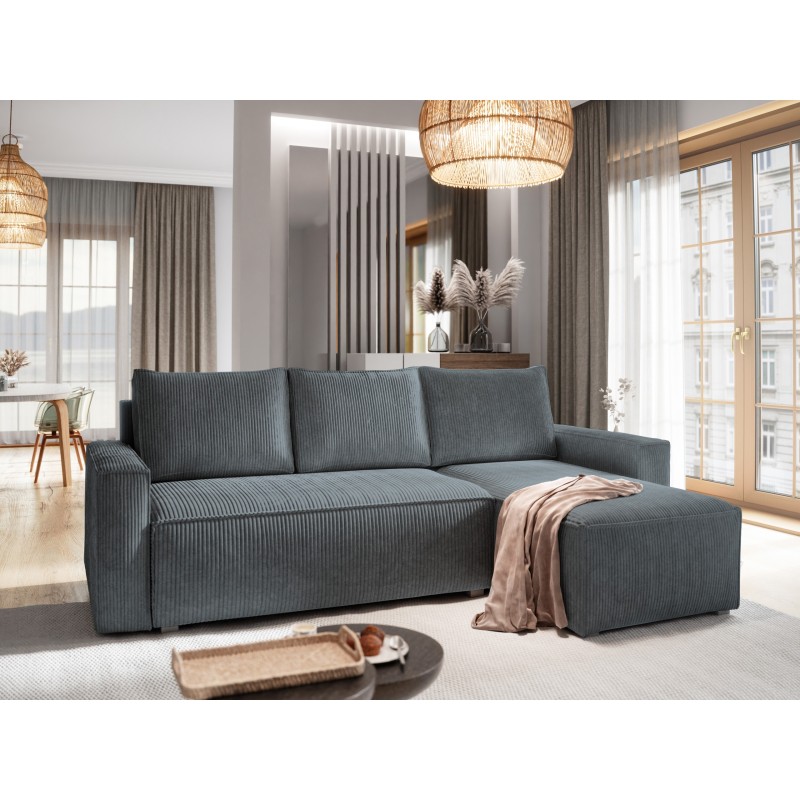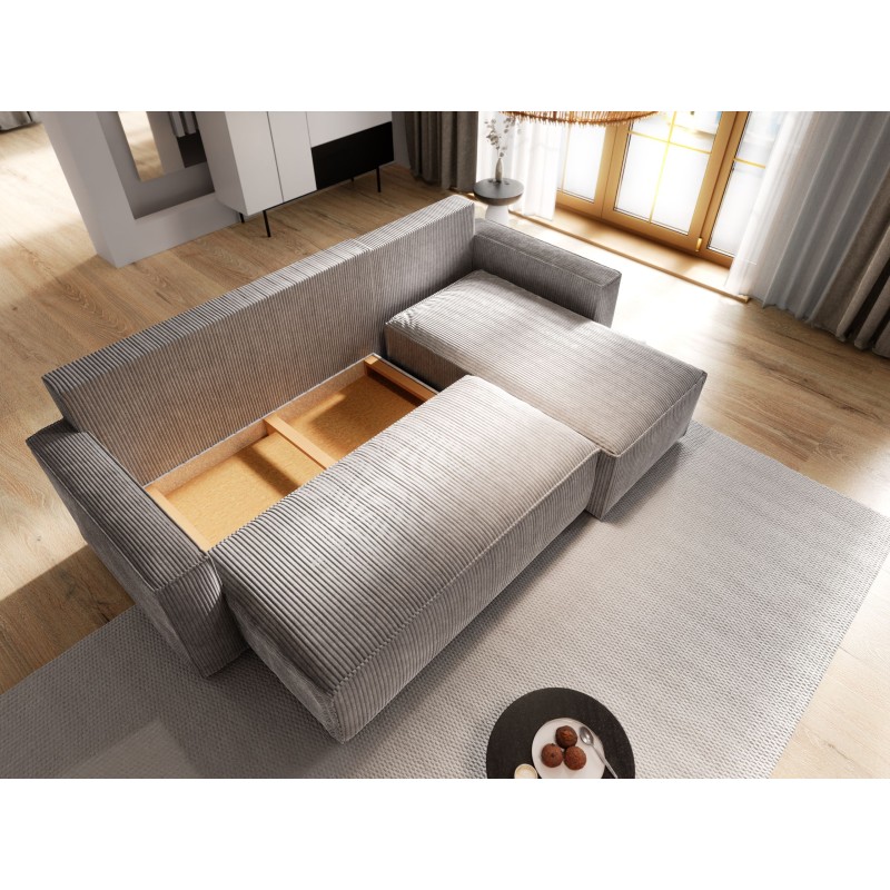 Masseno Ecksofa POTARO mit Schlaffunktion und Bettkasten, Ausziehbares Bettsofa - Grau, POSO 60