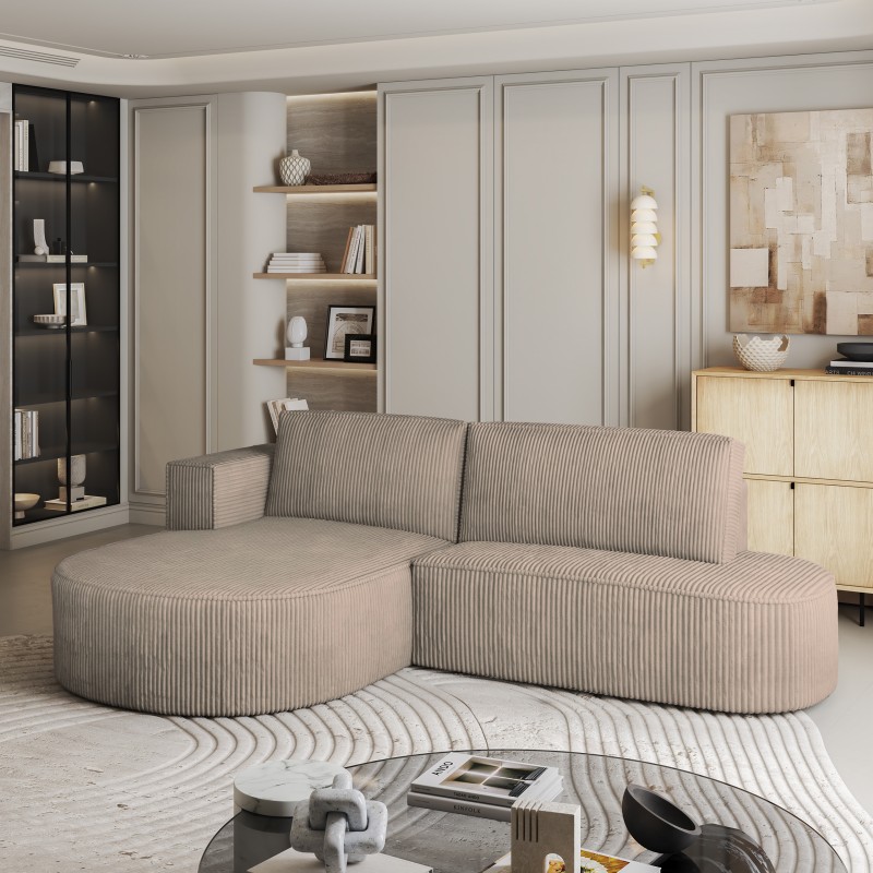 Masseno Ecksofa CORTIO mit Schlaffunktion und Bettkasten, Ausziehbares Bettsofa - Beige, POSO 02
