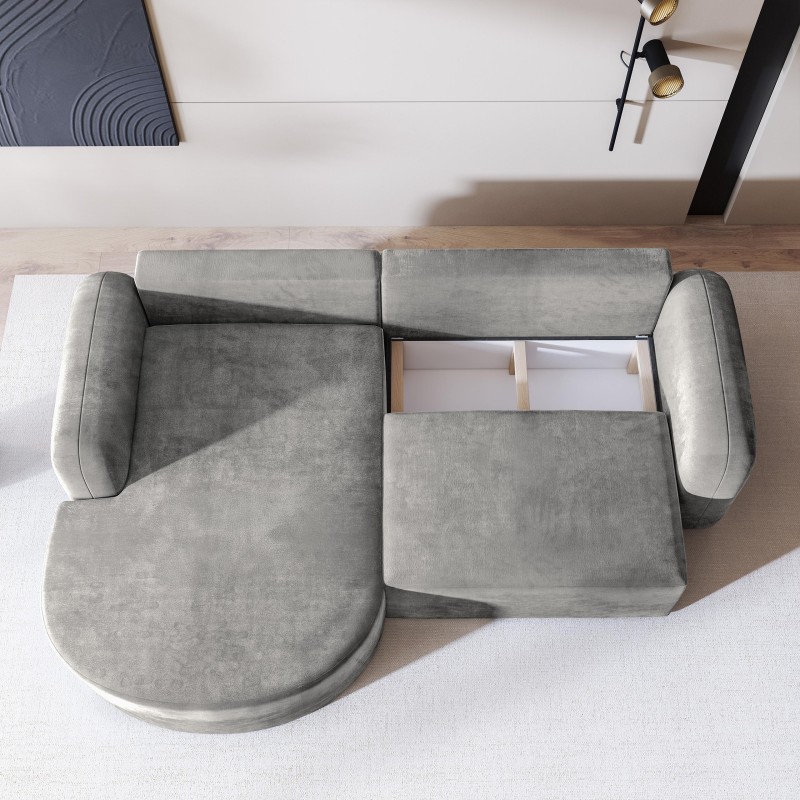 Masseno Ecksofa AMILIA mit Schlaffunktion und Bettkasten, Ausziehbares Bettsofa - Hellgrau, MONOLITH 84