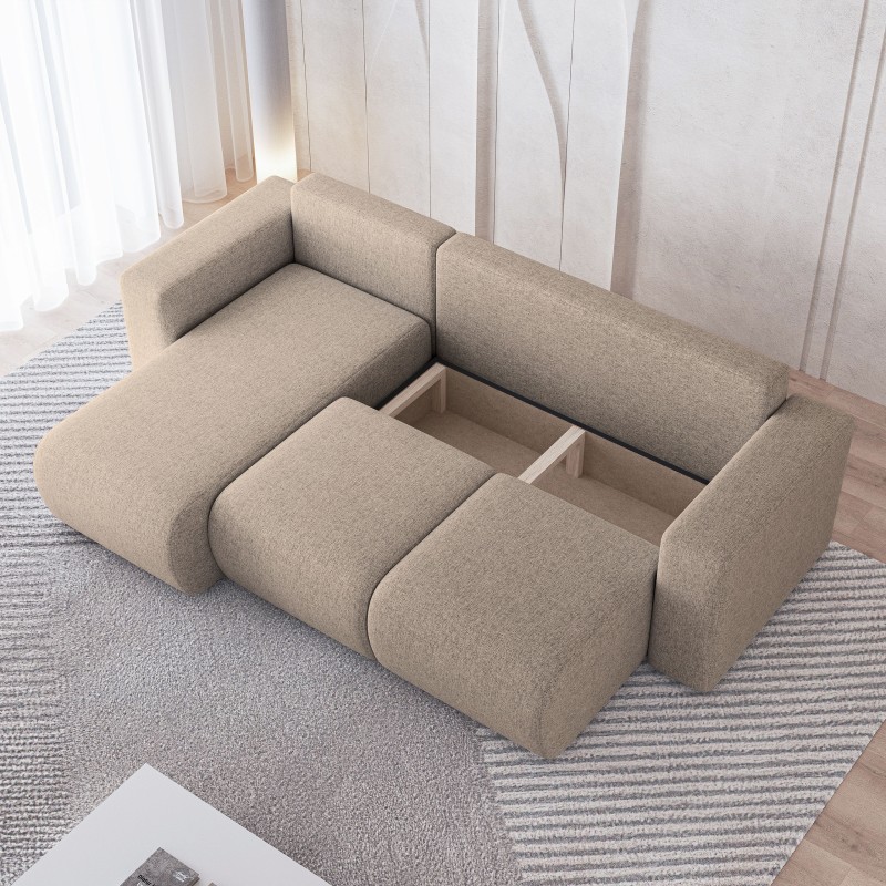 Masseno Ecksofa RINOVA mit Schlaffunktion und Bettkasten, Ausziehbares Bettsofa - Beige, NEVE 04