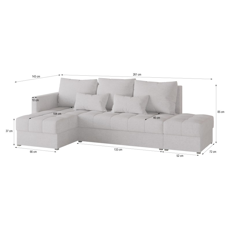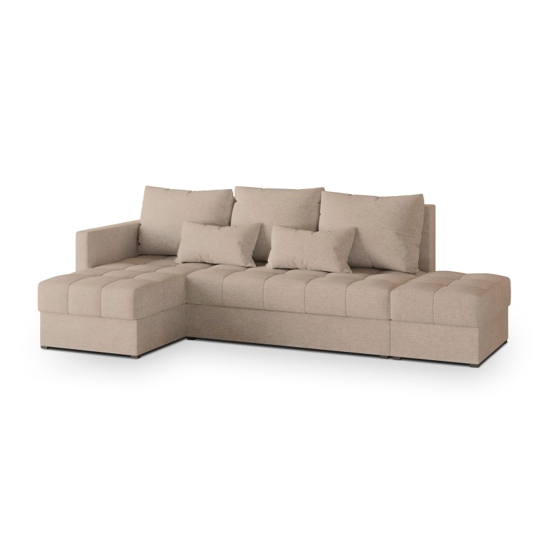 Masseno Ecksofa LUMARI mit Schlaffunktion und Bettkasten, Ausziehbares Bettsofa - Beige, NEVE 04