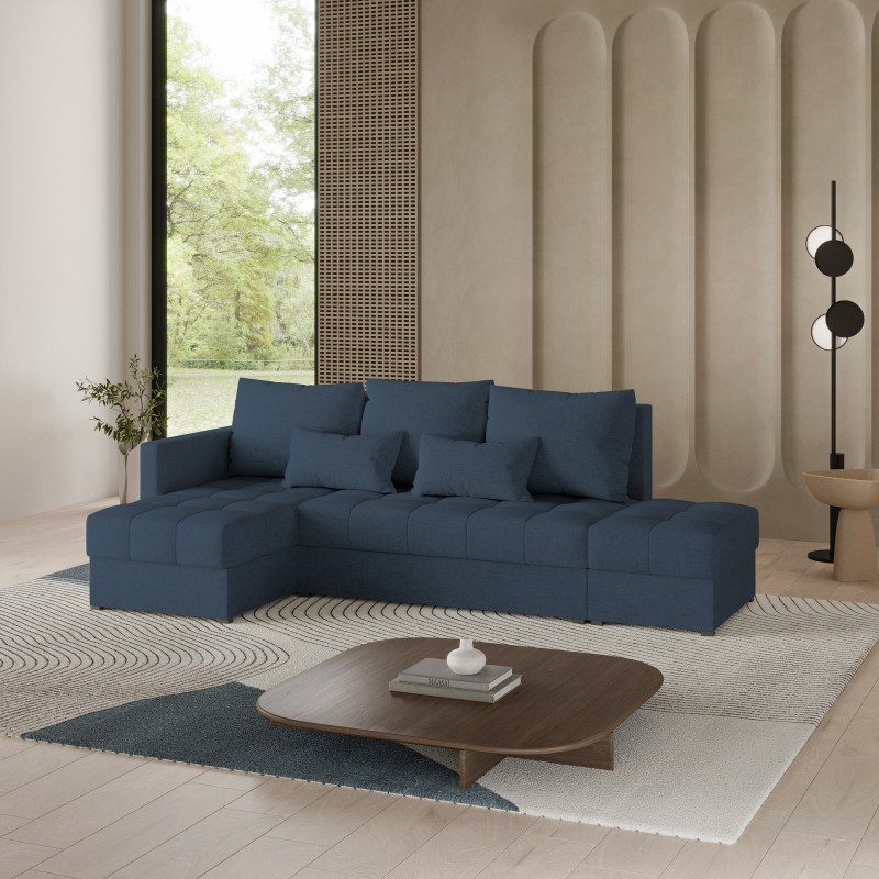 Masseno Ecksofa LUMARI mit Schlaffunktion und Bettkasten, Ausziehbares Bettsofa - Blau, NEVE 77