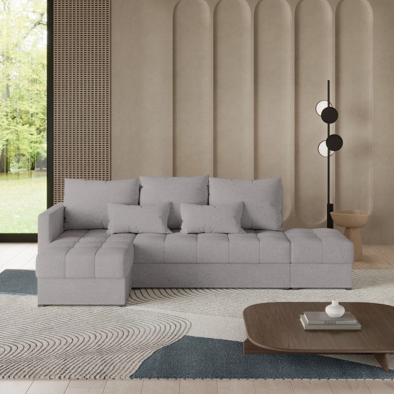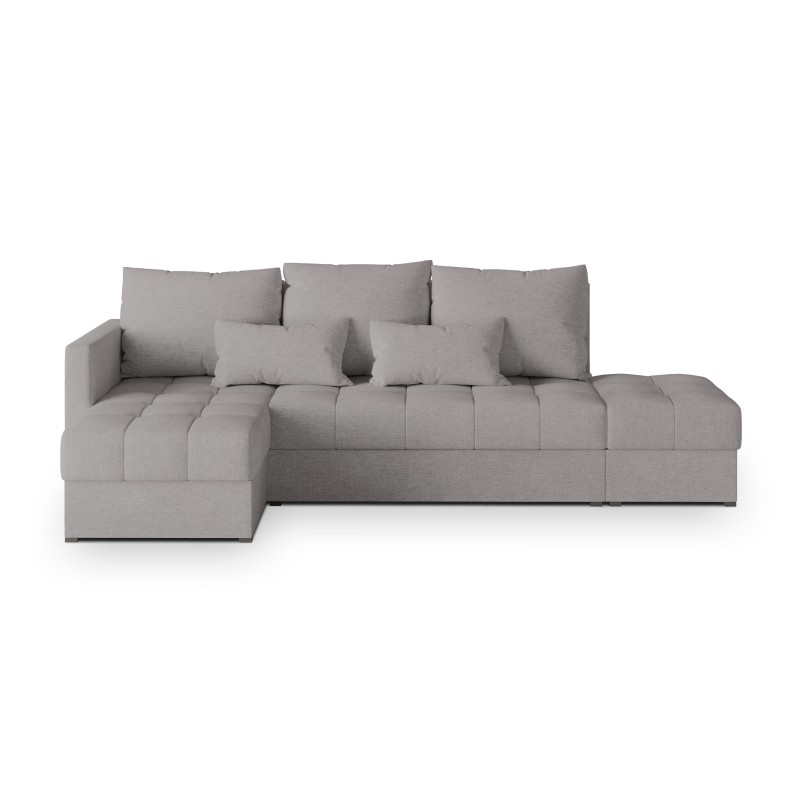 Masseno Ecksofa LUMARI mit Schlaffunktion und Bettkasten, Ausziehbares Bettsofa - Hellgrau, NEVE 83