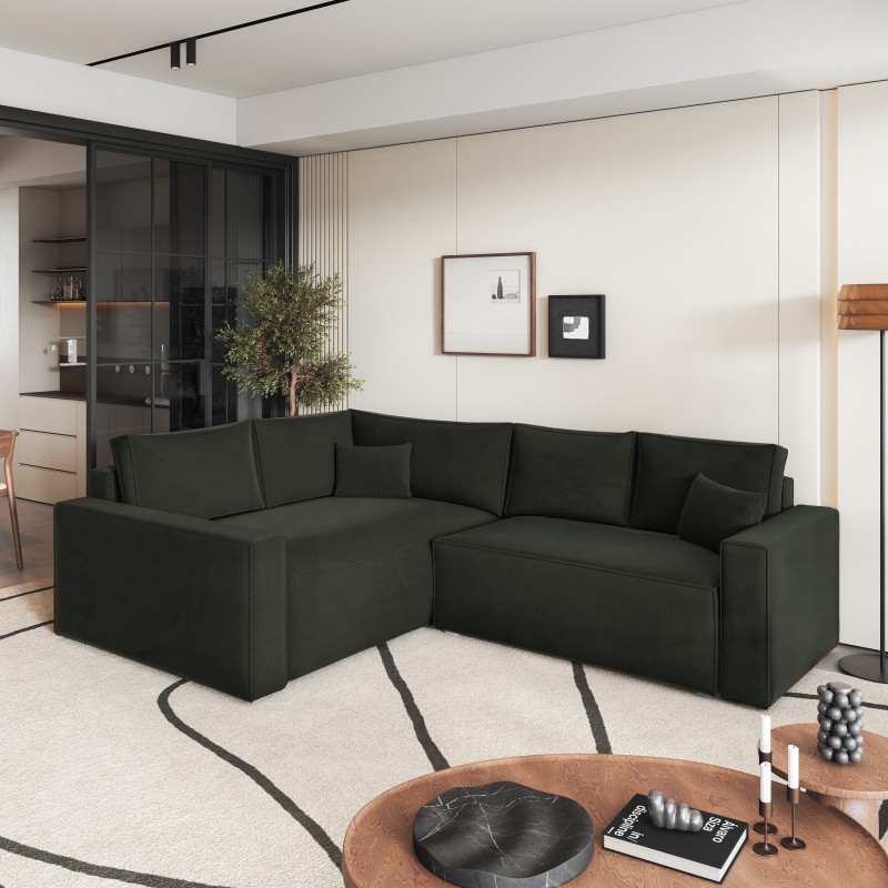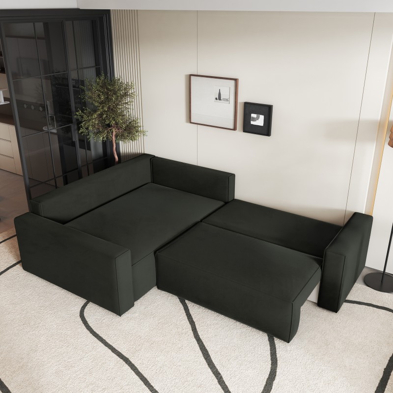 Masseno Ecksofa ERONIS mit Schlaffunktion und Bettkasten, Ausziehbares Bettsofa - Schwarz, MONOLITH 95