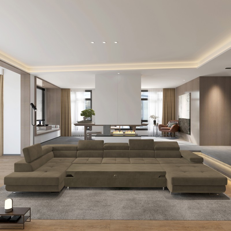 - Das Ecksofa ist mit einer 5-fach verstellbaren Kopfstütze ausgestattet, die es ermöglicht, den Neigungswinkel individuell an deine Bedürfnisse anzupassen. So genießt du maximalen Komfort – beim Lesen, Fernsehen oder Entspannen nach einem langen Tag.