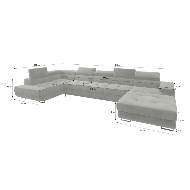 - Das Ecksofa ist mit einer 5-fach verstellbaren Kopfstütze ausgestattet, die es ermöglicht, den Neigungswinkel individuell an deine Bedürfnisse anzupassen. So genießt du maximalen Komfort – beim Lesen, Fernsehen oder Entspannen nach einem langen Tag.