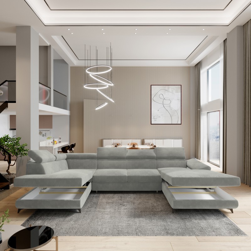 Masseno Ecksofa RUBANO mit Schlaffunktion und Bettkasten, Ausziehbares Bettsofa - Hellgrau, MONOLITH 84