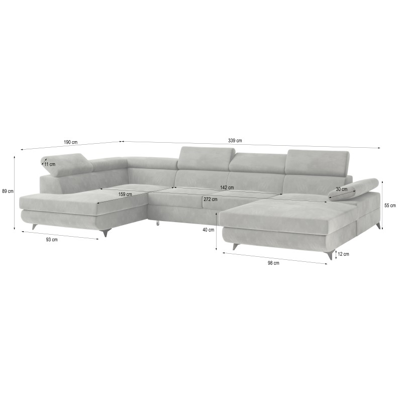 - Das Ecksofa ist mit einer 5-fach verstellbaren Kopfstütze ausgestattet, die es ermöglicht, den Neigungswinkel individuell an deine Bedürfnisse anzupassen. So genießt du maximalen Komfort – beim Lesen, Fernsehen oder Entspannen nach einem langen Tag.