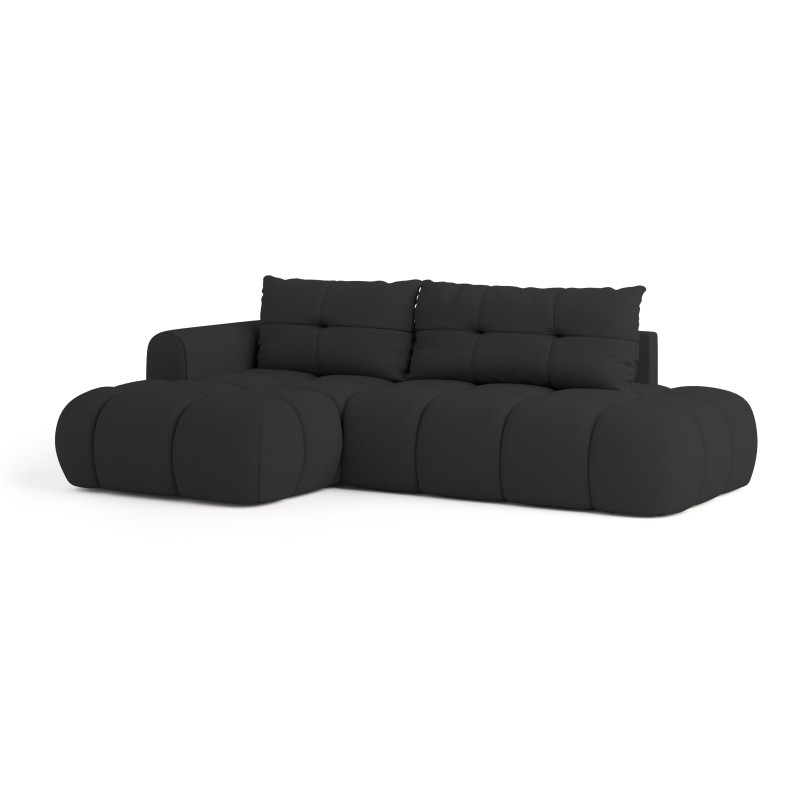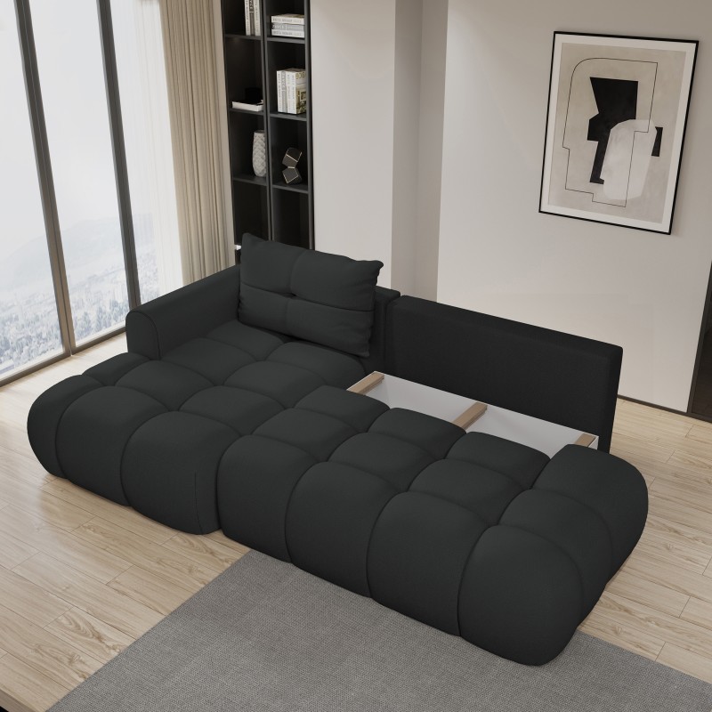 Masseno Ecksofa FLUMA mit Schlaffunktion und Bettkasten, Ausziehbares Bettsofa - Schwarz, SORO 100