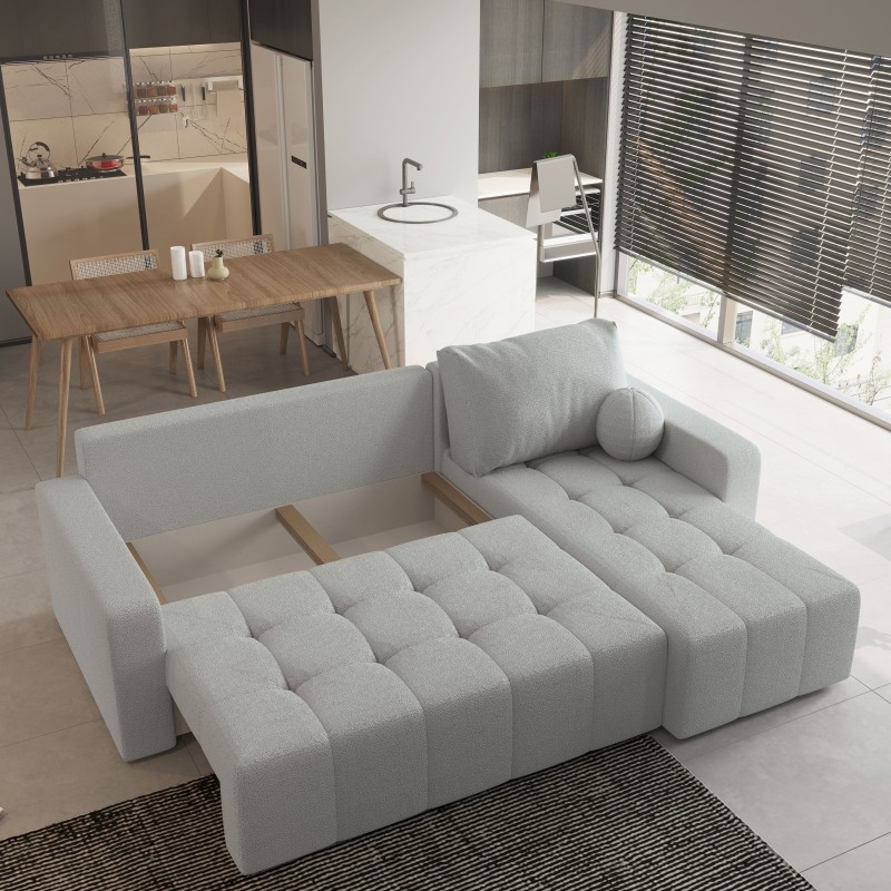 Masseno Ecksofa VOLIRA mit Schlaffunktion und Bettkasten, Ausziehbares Bettsofa - Hellgrau, QUELLE 83