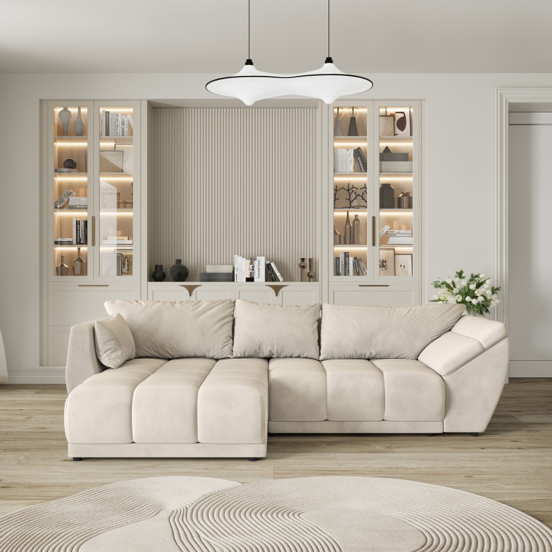 Masseno Ecksofa ORENTI mit Schlaffunktion und Bettkasten, Ausziehbares Bettsofa - Creme, MATT VELVET 06