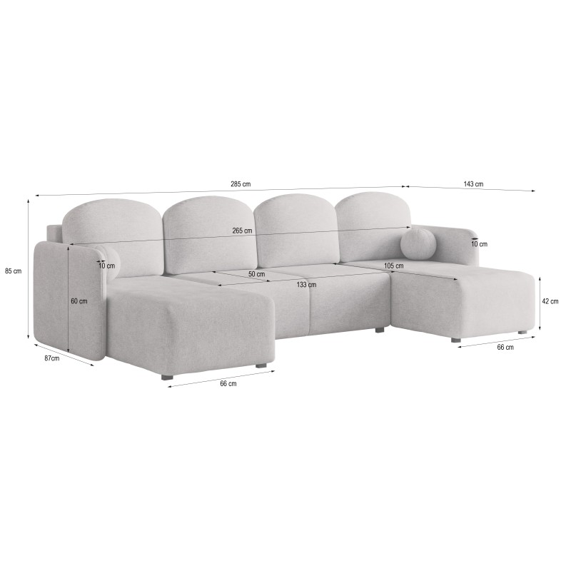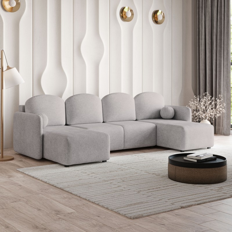 Masseno Ecksofa NUBERO mit Schlaffunktion und Bettkasten, Ausziehbares Bettsofa - Hellgrau, NEVE 83