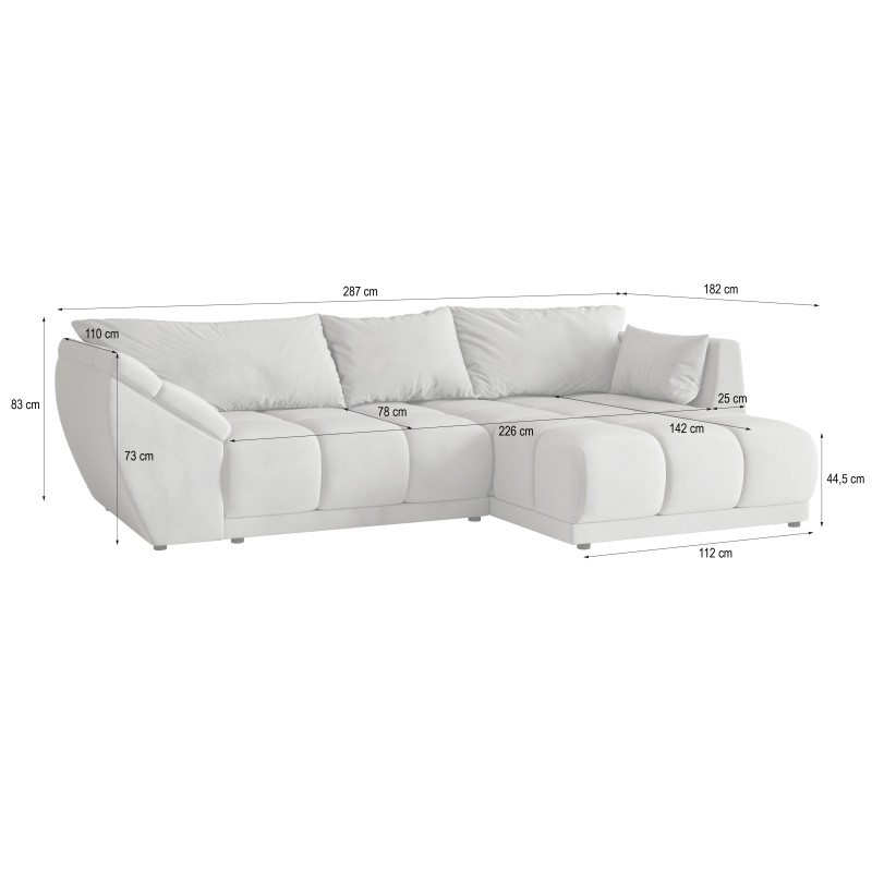Entdecke das Ecksofa ORENTI – eine perfekte Kombination aus modernem Design, hohem Sitzkomfort und funktionalen Lösungen, die dein Wohnzimmer in eine Wohlfühloase verwandeln. Dank der durchdachten Konstruktion und der Verwendung von hochwertigen Materialien bietet dieses Sofa nicht nur maximalen Komfort, sondern wird auch zum stilvollen Highlight in deinem Zuhause.