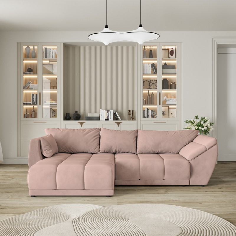 Masseno Ecksofa ORENTI mit Schlaffunktion und Bettkasten, Ausziehbares Bettsofa - Rosa, MATT VELVET 61