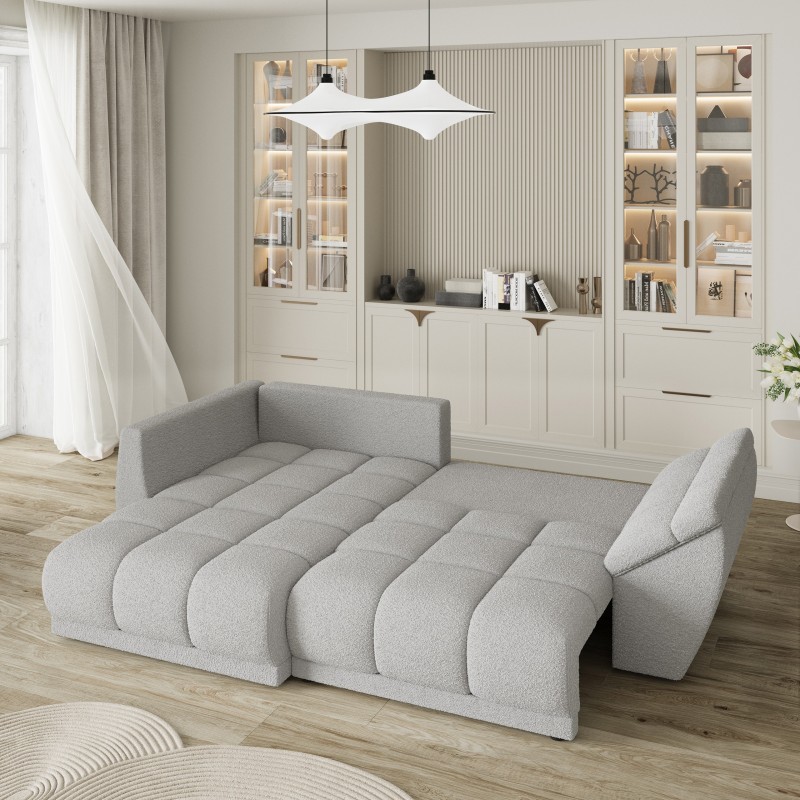 Masseno Ecksofa ORENTI mit Schlaffunktion und Bettkasten, Ausziehbares Bettsofa - Hellgrau, QUELLE 83