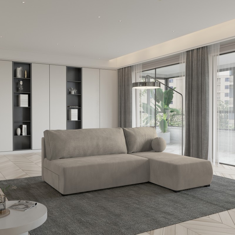 Masseno Ecksofa PARVELO mit Schlaffunktion und Bettkasten, Ausziehbares Bettsofa - Beige, POSO 02 + PAROS 02