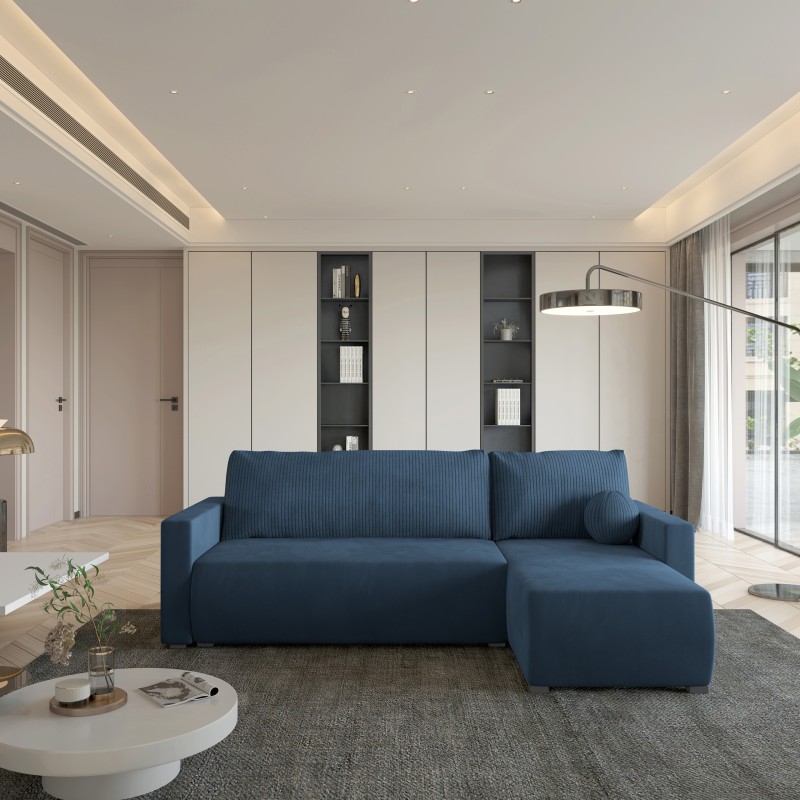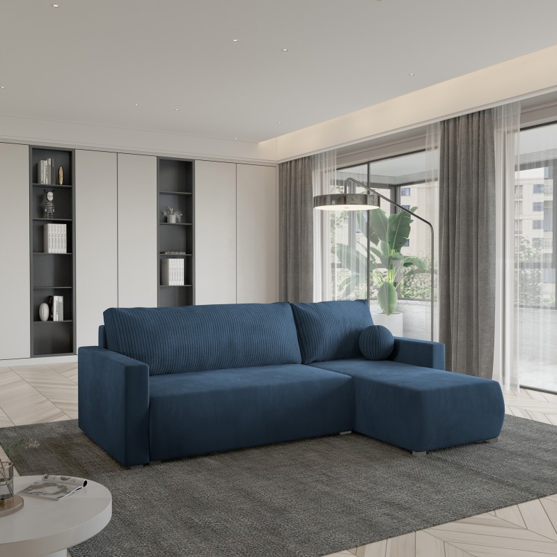 Masseno Ecksofa SORGE mit Schlaffunktion und Bettkasten, Ausziehbares Bettsofa - Blau, POSO 05 + KRONOS 05