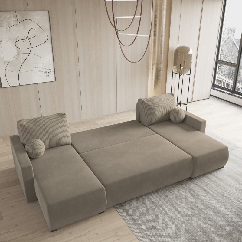 Masseno Ecksofa TESSUN mit Schlaffunktion und Bettkasten, Ausziehbares Bettsofa - Beige, POSO 02 + PAROS 02