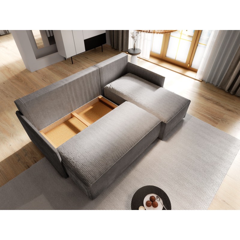 Masseno Ecksofa PERUSI mit Schlaffunktion und Bettkasten, Ausziehbares Bettsofa - Hellgrau, POSO 55