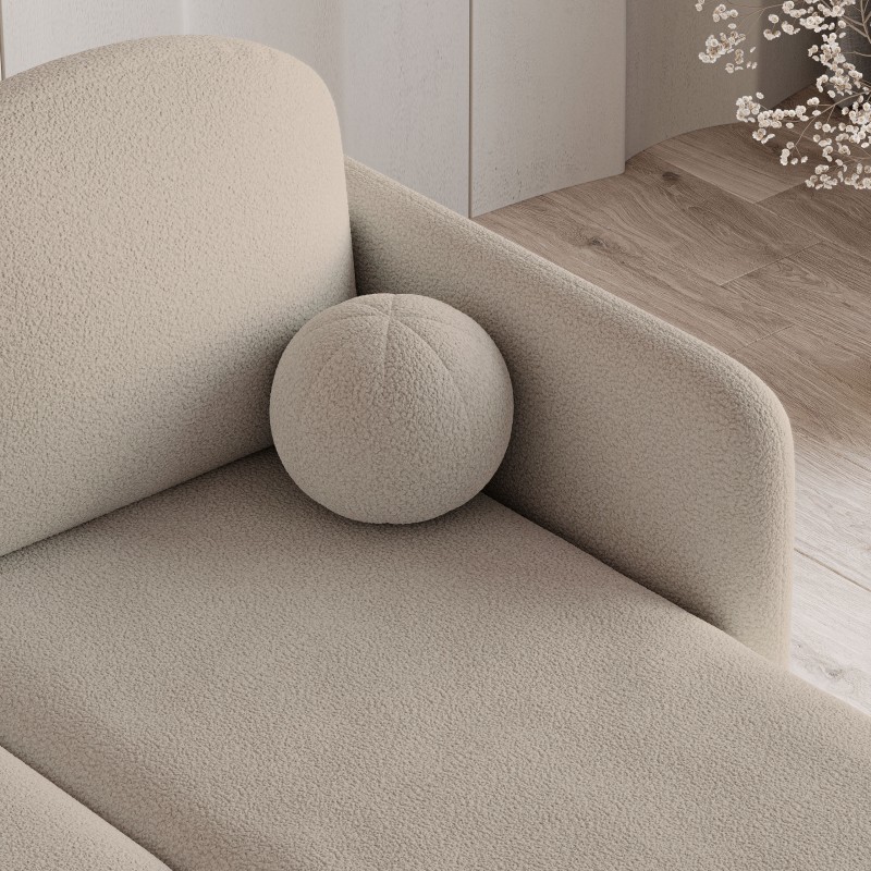 QUELLE ist ein Polsterstoff mit markanter Bouclé-Struktur („Schaf-Look“). Die weiche, flauschige Oberfläche bringt Behaglichkeit und Raffinesse ins Interieur, passend zu klassischen wie modernen Einrichtungen. Hochwertige Verarbeitung sorgt für langanhaltende Formstabilität und Komfort.