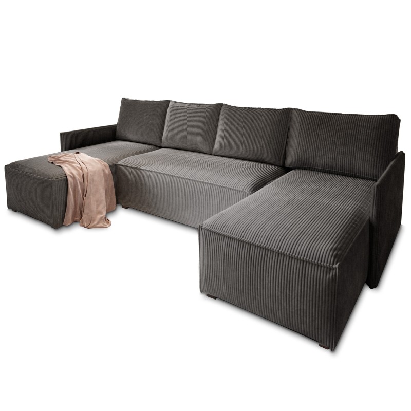 Masseno Ecksofa TRES mit Schlaffunktion und Bettkasten, Ausziehbares Bettsofa - Graphitfarben, POSO 34