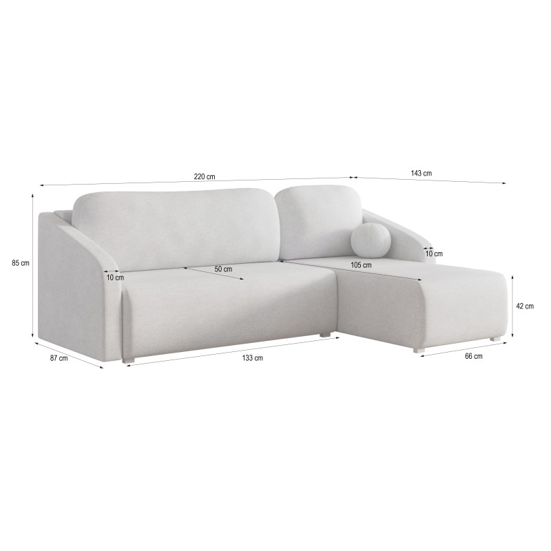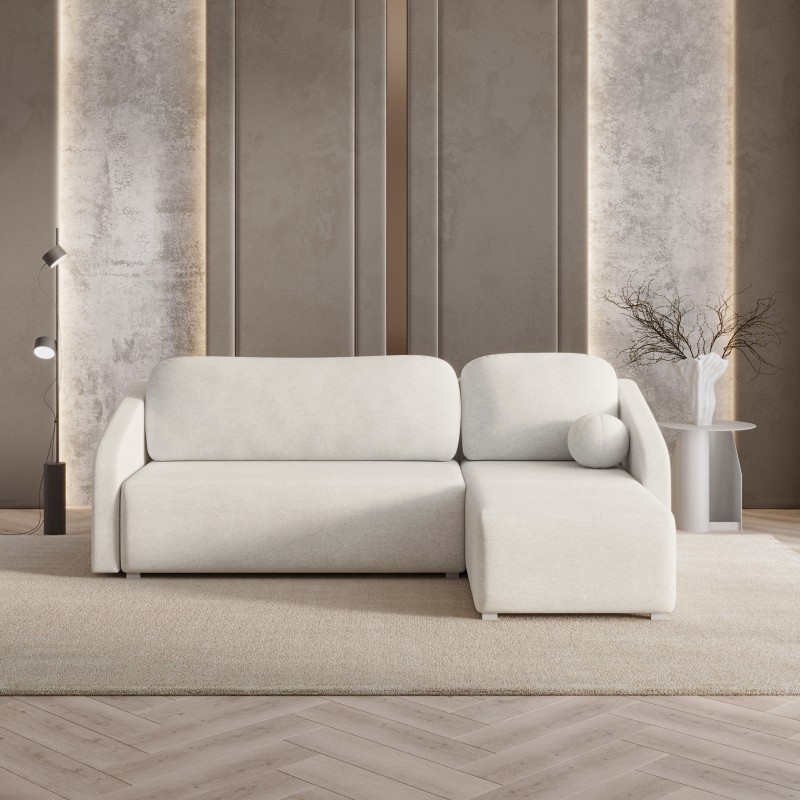 Masseno Ecksofa MARELLO mit Schlaffunktion und Bettkasten, Ausziehbares Bettsofa - Creme, NEVE 02
