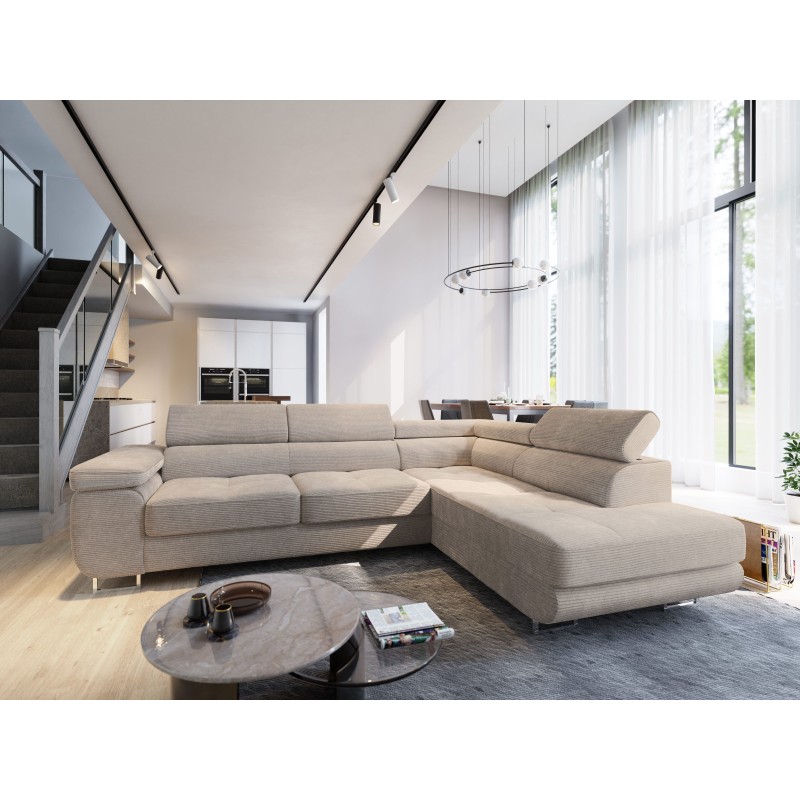 Masseno Ecksofa APIRO mit Schlaffunktion und Bettkasten, Ausziehbares Bettsofa - Beige, POSO 02