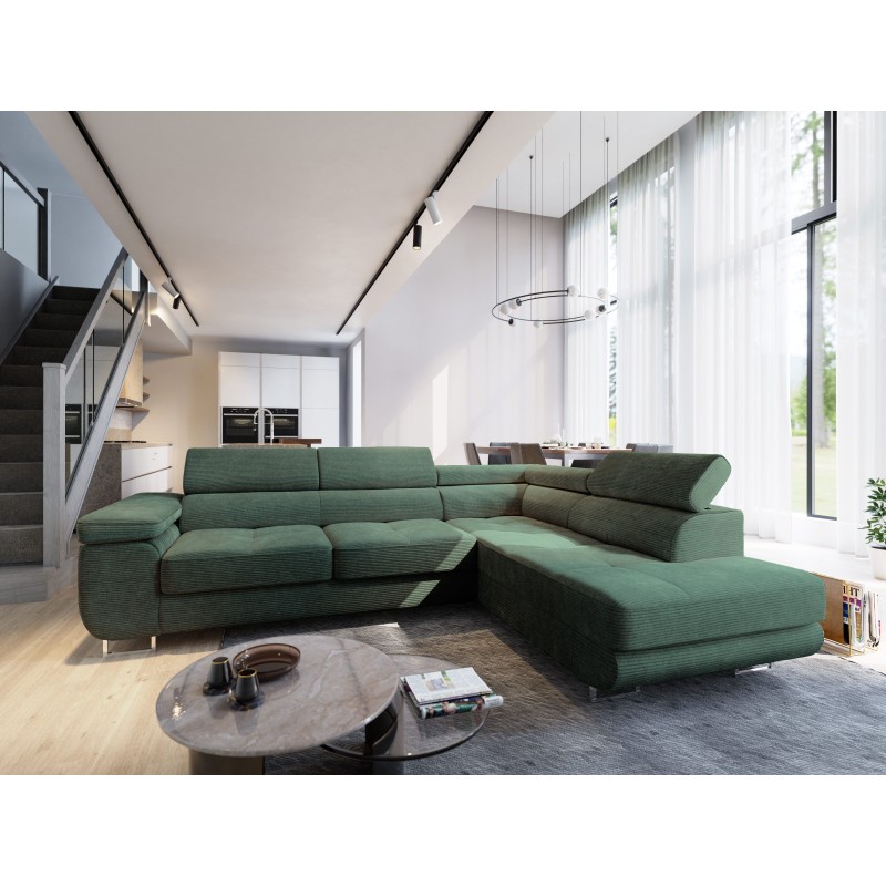 Masseno Ecksofa APIRO mit Schlaffunktion und Bettkasten, Ausziehbares Bettsofa - Grün, POSO 14