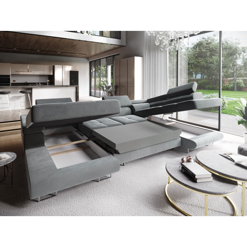Masseno Ecksofa CASONE mit Schlaffunktion und Bettkasten, Ausziehbares Bettsofa - Grau, MONOLITH 85