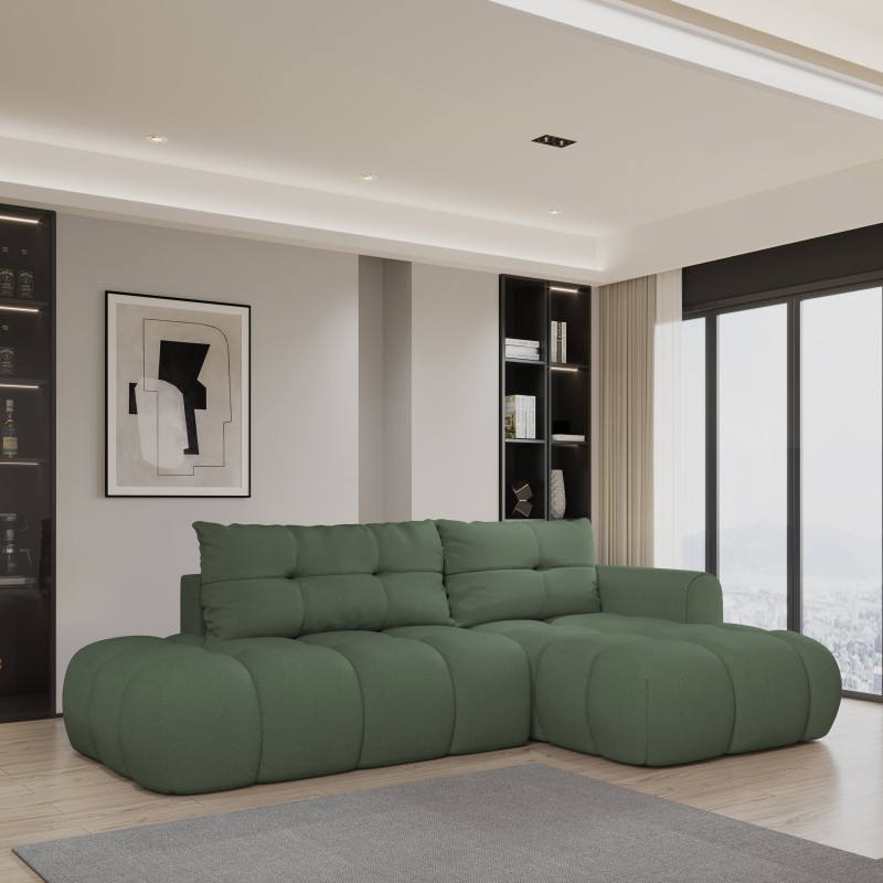 Masseno Ecksofa FLUMA mit Schlaffunktion und Bettkasten, Ausziehbares Bettsofa - Grün, SORO 72