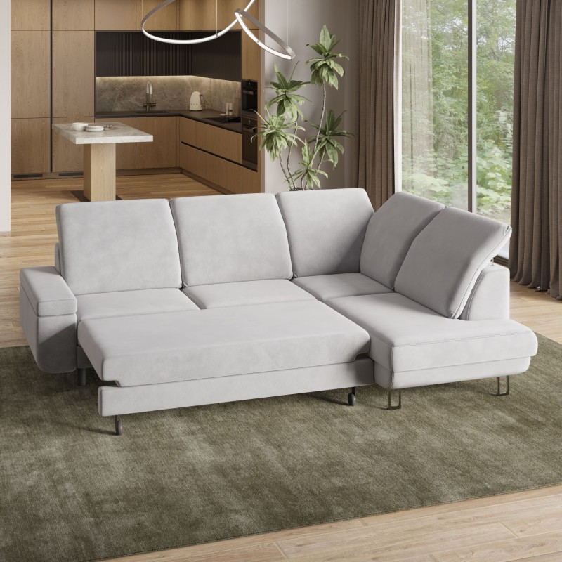 Masseno Ecksofa LERMA mit Schlaffunktion und Bettkasten, Ausziehbares Bettsofa - Hellgrau, MONOLITH 84