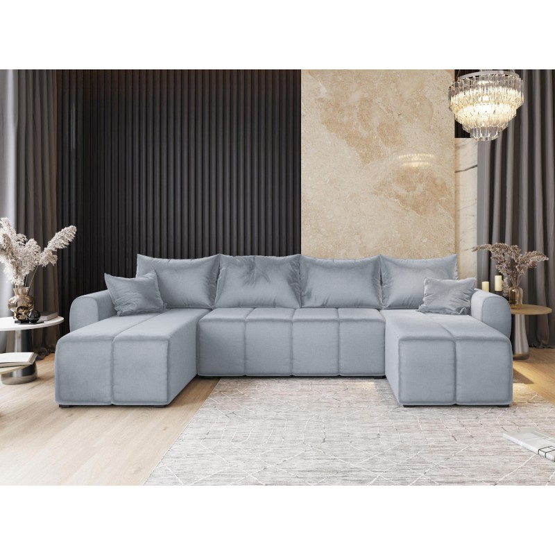 Masseno Ecksofa MADISON mit Schlaffunktion und Bettkasten, Ausziehbares Bettsofa - Hellgrau, PAROS 05