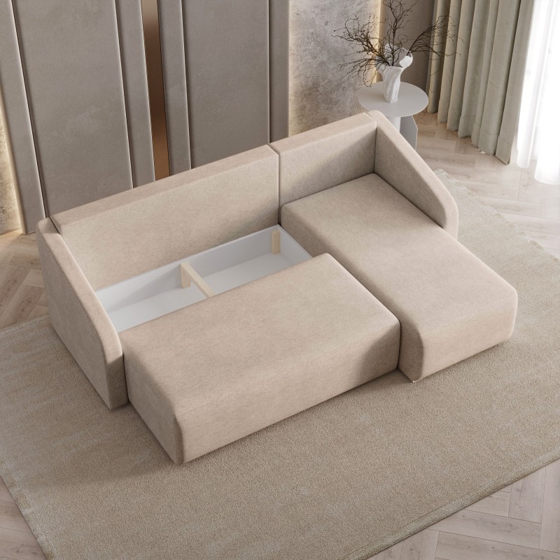Masseno Ecksofa MARELLO mit Schlaffunktion und Bettkasten, Ausziehbares Bettsofa - Beige, NEVE 04