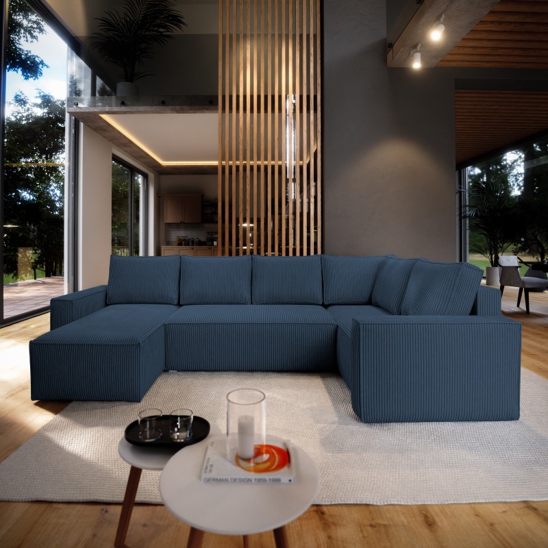 Masseno Ecksofa NORENA mit Schlaffunktion und Bettkasten, Ausziehbares Bettsofa - Blau, POSO 05