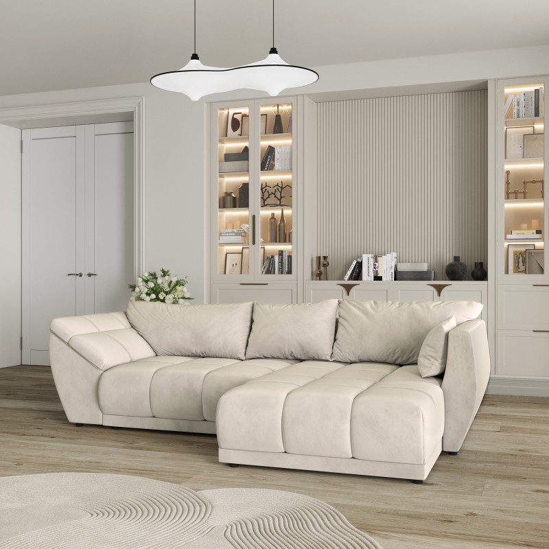 Masseno Ecksofa ORENTI mit Schlaffunktion und Bettkasten, Ausziehbares Bettsofa - Creme, MATT VELVET 06