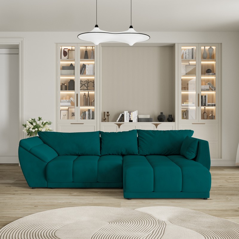 Masseno Ecksofa ORENTI mit Schlaffunktion und Bettkasten, Ausziehbares Bettsofa - Blau, MATT VELVET 77